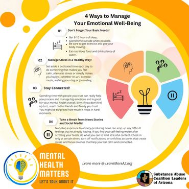 The Yuma County Mental Health Coalition tackles the growing need for mental health awareness and support by breaking down stigmas, providing resources, and fostering open discussions about mental well-being. As stress, anxiety, and depression affect more people across all demographics, YCADC and YCMHC seek to reframe mental health challenges as a universal experience, deserving of compassion, understanding, and care.