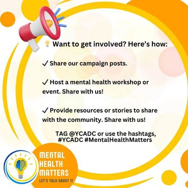 This campaign tackles the growing need for mental health awareness and support by breaking down stigmas, providing resources, and fostering open discussions about mental well-being. As stress, anxiety, and depression affect more people across all demographics, YCADC seeks to reframe mental health challenges as a universal experience, deserving compassion, understanding, and care.