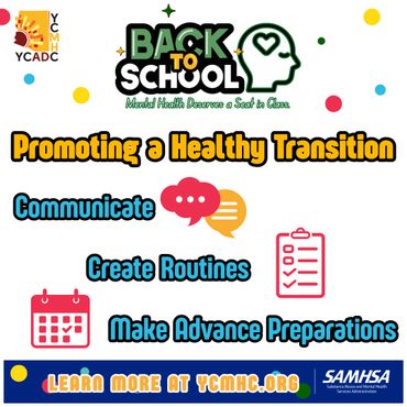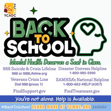 July and August mean back-to-school time for our younger Yumans! Being ready for Back-to-School means more than backpacks, binders, and bus schedules. It also means mentally preparing yourself and your children for the stressors and challenges they may face. YCADC | YCMHC | SAMHSA strives to provide parents and caregivers with the tools they need to support behavioral wellness. These tools are designed to help parents and caregivers talk to their children about mental illness and substance misuse, identify where additional support may be needed, and provide a connection to care. As we approach the new school year, let’s make ‘Caring for Every Child’s Mental Health’ a priority.